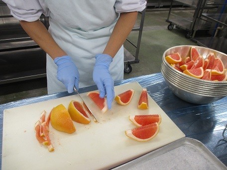 そんな日に関連して、今日の給食では、目の健康維持に役立つ食材をとして、鮭やアーモンド、うずらの卵、ルビー種のグレープフルーツなどを使いました。