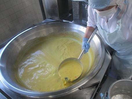 といっても、この絵本のなかでは黄色いスープが登場しているだけで、材料や作り方はでてこないので完全に絵から想像したものですが……。今回は、物語の舞台が森のなかであることと、小さな子ども向けの作品であることから、カボチャと人参を使った栄養満点で優しい味のポタージュスープに仕上げました。