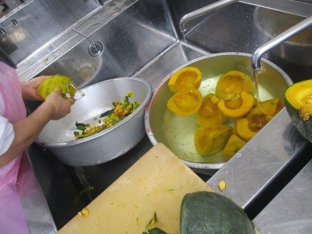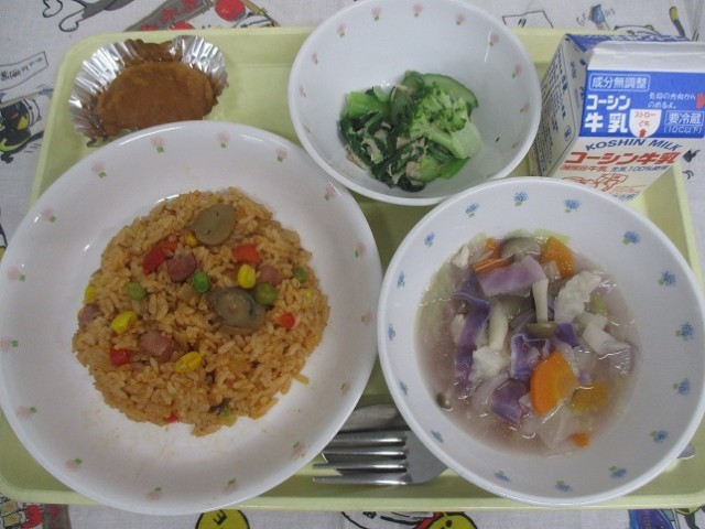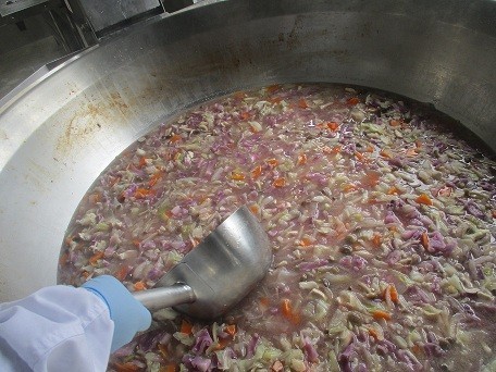 そんな日に関連して、給食ではデザートにカボチャを使ったスイーツを取り入れたほか、紫キャベツを使った不思議なスープを作ってみました。