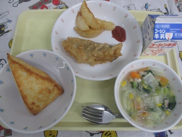 今日の給食は、世界の料理から、イギリスの料理でした。
