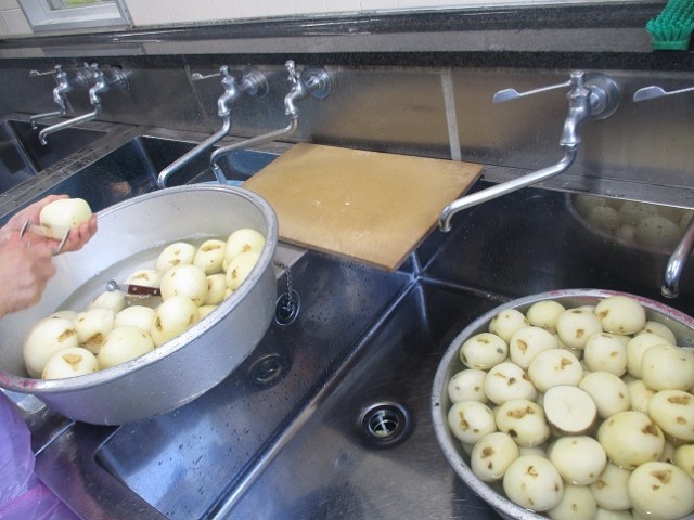 給食では、羊肉の代わりにとり肉を使って作りました。