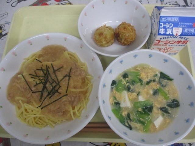 今月は、11月24日が“いい日本食”のごろ合わせで「和食の日」であることから、「和食月間」です。これに関連して、スパゲティも和風に仕上げました。