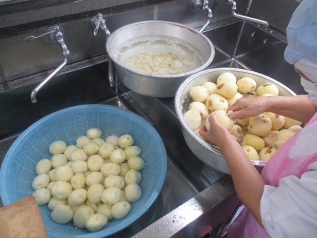 八丁みそは、豆と塩、水だけで作る「豆みそ」の仲間で、濃い茶褐色をしていて、独特な渋味とうま味があります。