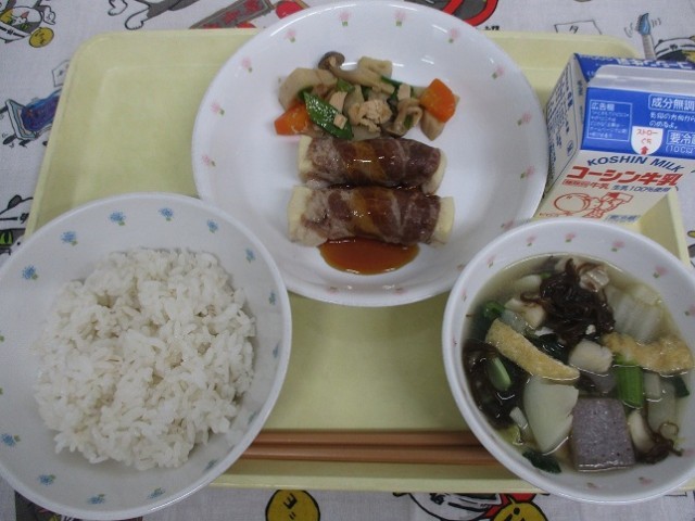 ですが、今日の給食のように一度煮たものを肉巻きにすることで、高野豆腐の煮物の良さを残しつつ、成長期で食べ盛りの中学生でもがっつりと食べることができ、かつ、苦手な人でも違和感なく美味しく・手軽に栄養アップも狙うことができます。