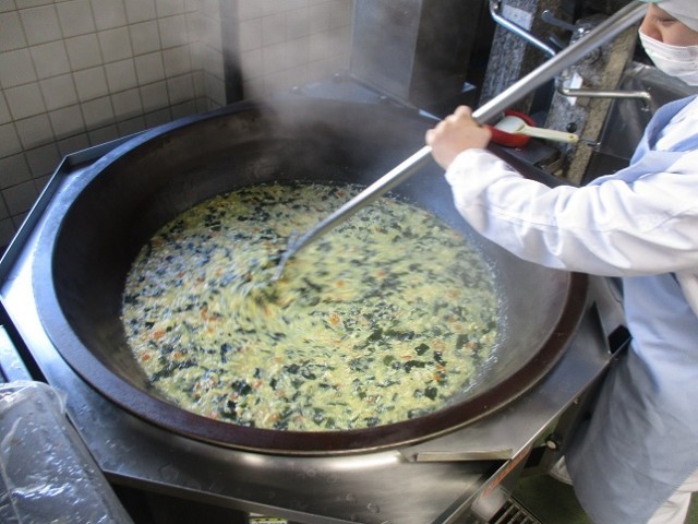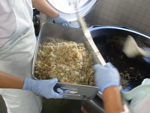 今日は中華料理の献立でした。スープは、献立を見てどんな料理だろう?と思った人が多かったと思いますが、中華風のたまごスープのことです。“蓮”の“花”の“湯”と書いて、「レンフォアタン」と読みます。