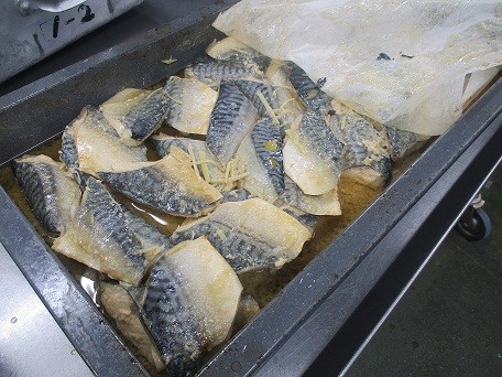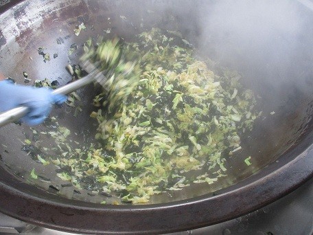鯖のみそ煮は本来は鍋(給食室だと大きな釜)でじっくり煮ますが、煮崩れてしまうのを防ぐためにスチーム機能の付いたオーブンで蒸し煮にしました。