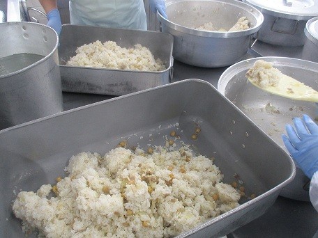 給食ではヒヨコ豆を使いましたが、本来は「ブラックアイドピー(黒目豆)」という、お金を象徴する縁起の良い豆を使って作ります。