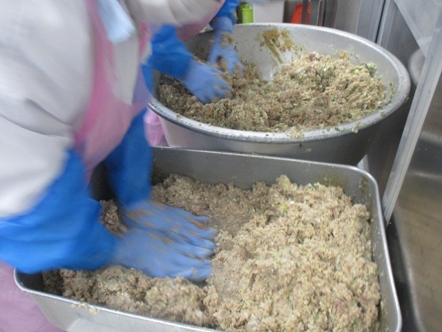 その「なめろう」をあわびの殻につめて焼いた物を「さんが焼き」といいます。給食では殻に詰めずに、ハンバーグのように焼きます。