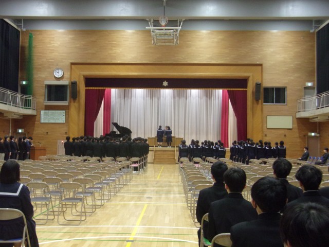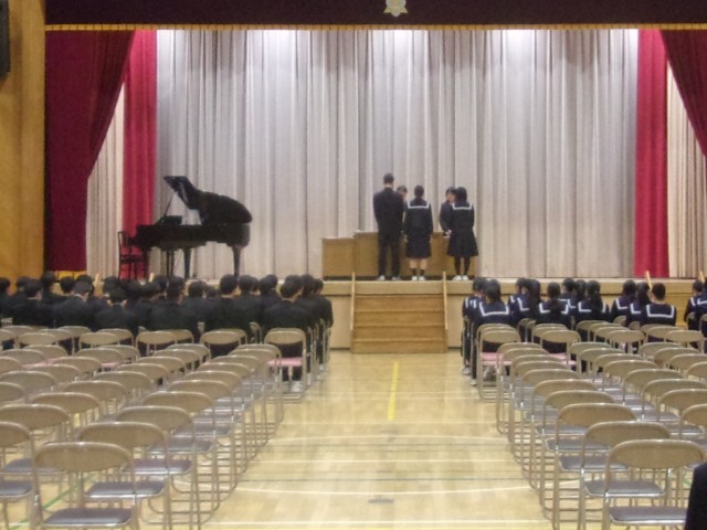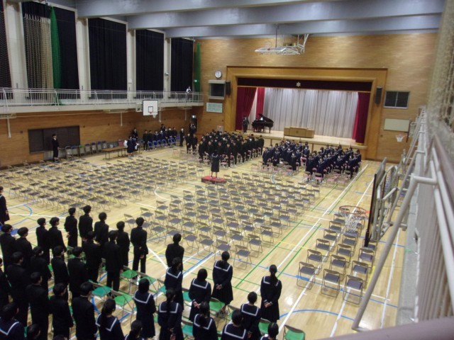 式歌も校歌も全校生徒そろっての歌声は心を動かします。