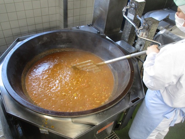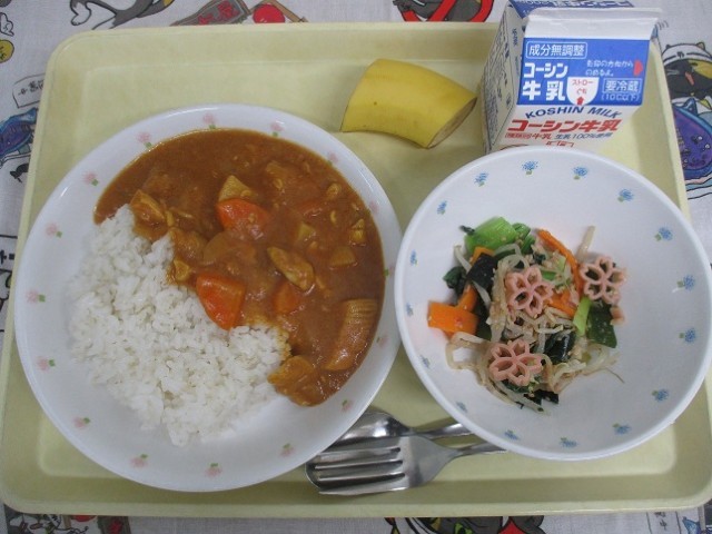 令和8年度の給食がスタートしました!初日なので、慌ただしいなかでも準備しやすく・食べやすい、小岩五中で大人気の「カレーライス」を中心とした献立にしました。