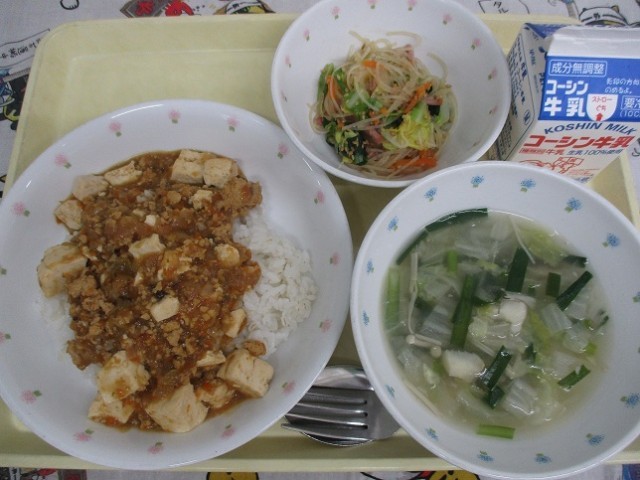今日は中華料理の献立でした。 麻婆豆腐というと中華の定番料理ですが、中国の四川省で約150年前に誕生したそうです。当時、とある家のおかみさんが、貧しくて材料があまりないなか、あり合わせのもので来客に向けて作ったのが最初だといわれています。