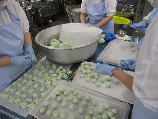 江戸時代には、ちょうどこの時期に出始めるヨモギの若葉を使って「草餅」を作っていたそうなので、給食でも「草だんご」を作りました。
