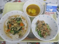 給食では、この日に関連して、目の健康を保つのに役立つ食材を使いました。