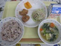 今日は3年生を応援するために「受験に勝つ」という願いを込めて「チキン勝つバーガー」を作りました。