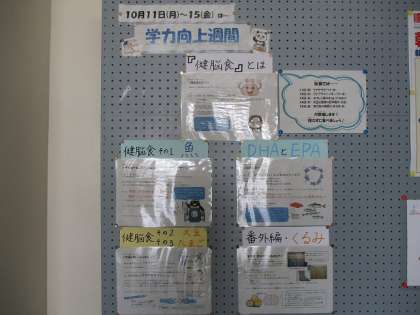 また、もう気づいて読んでくれた人もいるかもしれませんが、生徒玄関前の掲示板に脳の健康に良い食材・「健脳食」について掲示してあります。時間のある時に、ぜひチェックしてください♪