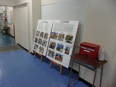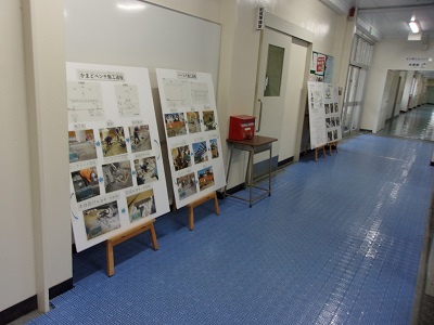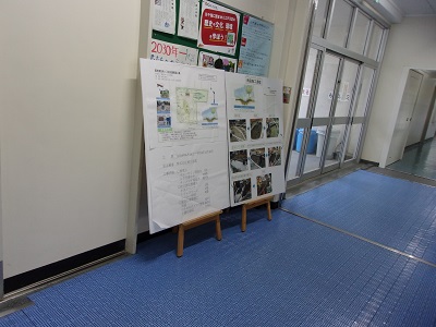 先週実施した公園見学の中で活用した公園パネルを生徒玄関に掲示することにしました。学校前につくられる防災公園の特徴について学ぶ機会にしたいと思います。