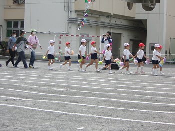 年長児10名は、とても無邪気で明るく、プログラムの中では、規律正しく参加していました。園長先生が投げかける言葉に対して気持ちの良い返事をしていました。『うんどうかいのうた』『園歌』は少ない人数とは思えないほど素晴らしかったです。