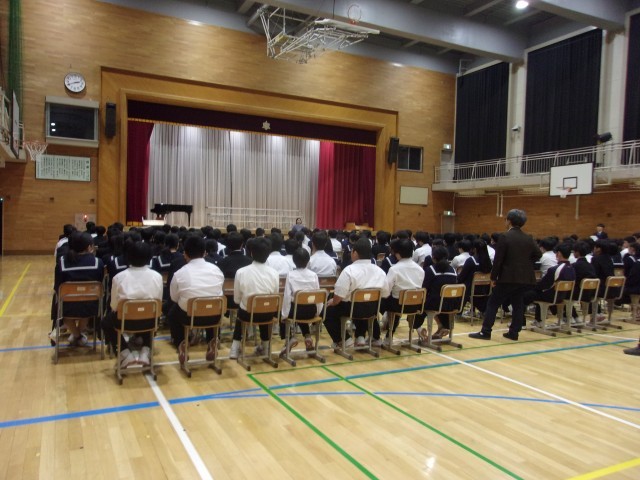 6組発表・生徒会発表・国語科弁論・吹奏楽発表・閉会式