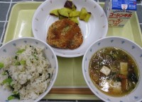 【献立】小松菜の塩昆布ご飯小松菜入りアジメンチさつまいものゆずがらめなめこのみぞ...