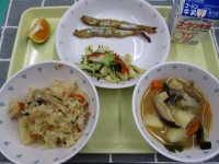 【献立】エリンギ鶏めしししゃものごまマヨ焼きひじきと水菜の和え物高野豆腐の味噌汁...