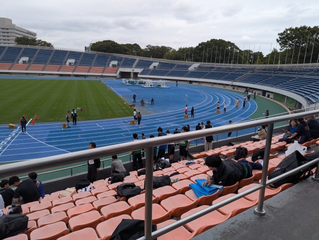 今日は、8組が駒沢陸上競技場に来ています!天候は暑くなく、陸上日和です。現在、3年男子幅跳び、1年男子100m、2年女子200mが入賞を決めています!本日最後の種目、男子400m結果は???