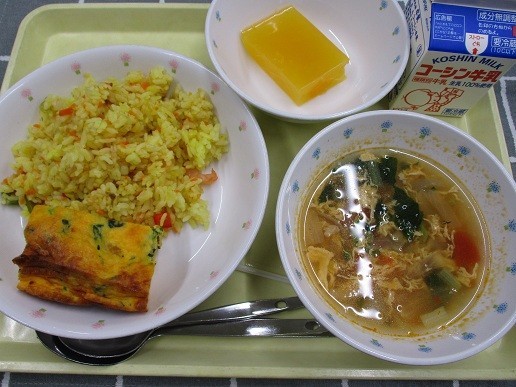 今日の給食はスペインの料理をアレンジした給食メニューを出しました。