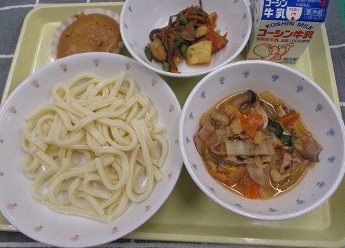 今日の給食の「変わりきんぴら」は素揚げしたじゃがいもをにんじん、ごぼう、さつま揚げなどの具材と共に甘辛味で炒めて調理しています。素揚げしたじゃがいもと甘辛の味付けがよく合います。