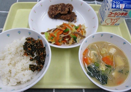 今日の給食は、学校給食週間にちなんで、昭和の時期に給食でよく食べられていた鯨を出しました。