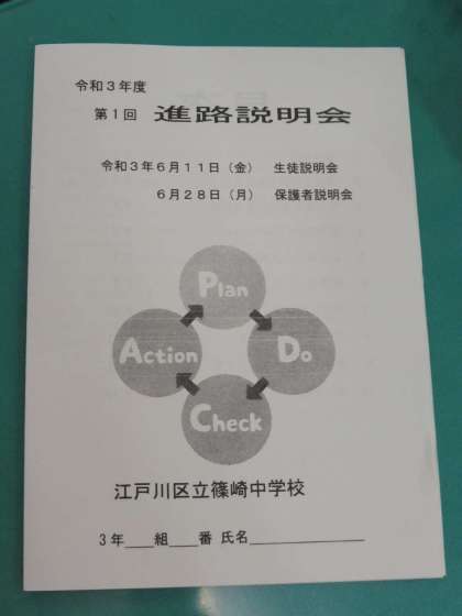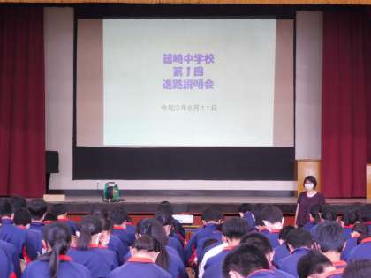 生徒対象の第1回進路説明会を本日6校時に行いました。