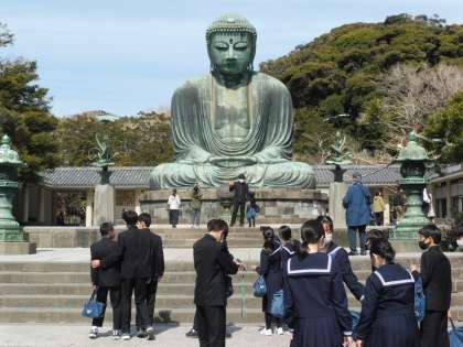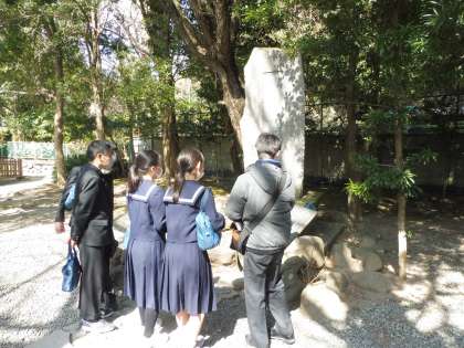 与謝野晶子の歌碑の前で説明をしてもらっています。