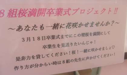 卒業式までに、花を咲かせ満開の桜の木の中お別れしようというプロジェクト。