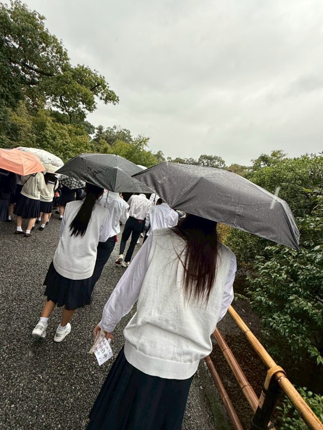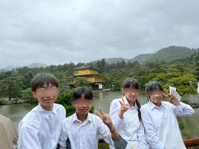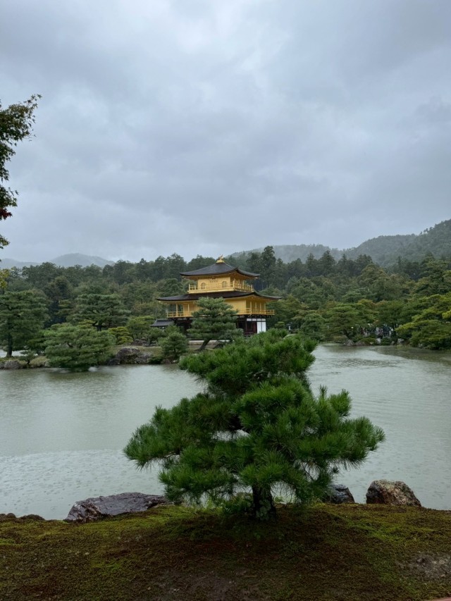 雨で鏡湖池には反射していませんでしたが、きれいな金閣寺を見ることができました!
