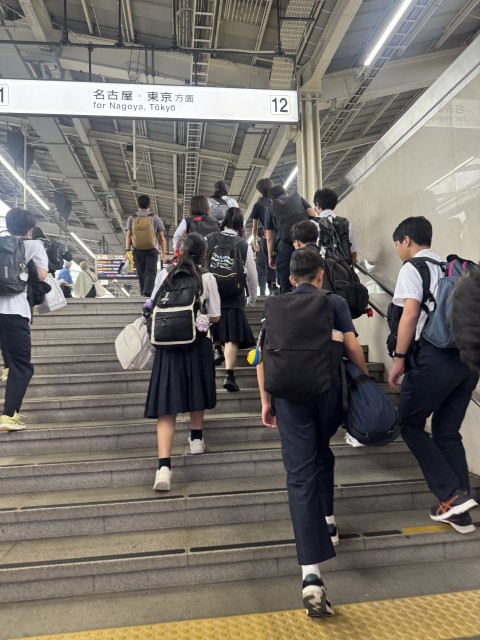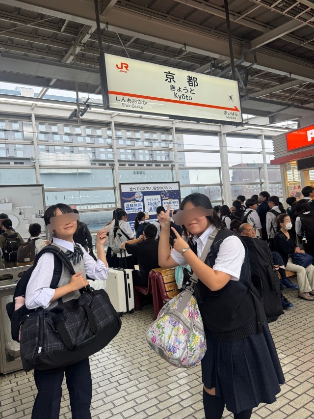 京都駅新幹線ホームは他の修学旅行生もたくさんいて、全員乗り込むのにすごく大変でしたが、無事全員乗れました💦