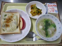 グラタントースト カシューナッツのサラダ かぶとベーコンのスープ りんご 牛乳か...