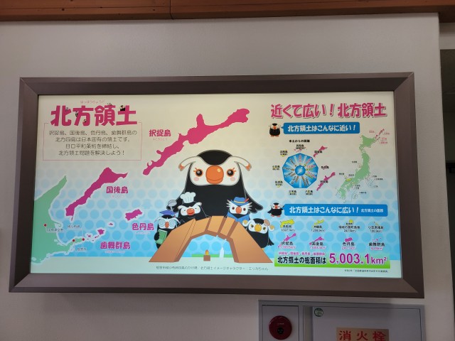 根室市には、あちこちに上のような看板が見られます。また、道路標識は英語だけでなく”ロシア語”で標記されていて、ロシアの人たちとの交流が盛んであることが伝わってきます。北方領土に住むロシア人は、ロシアからのサポートより、日本との関係を築いていきたいようです。それも、道路はなかなか舗装されないし、トイレはいまだに水洗ではないところが多いためだそうです。そのため、日本に買い物にくるそうです。