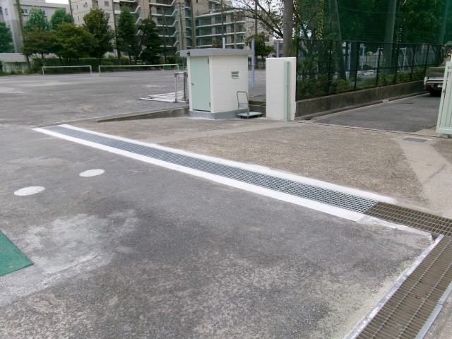 経年劣化で、側溝付近のコンクリートにひびが入り、登下校の際に生徒がつまずいてしまう心配がありました。