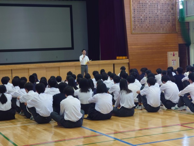 今日は3年生の学年朝礼でした。1つは面接書類や自己申告書の書き方について、厳しい指摘の中にもとても大切なお話がありました。自分の事を文書で相手に伝える場面はこの先たくさん出てきます。ぜひ訓練をして相手に伝える力を身につけてほしいと思います。