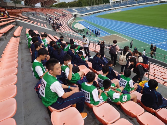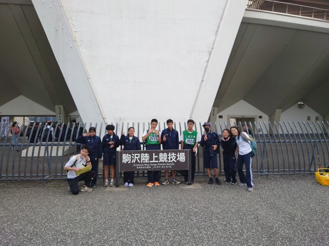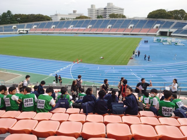 駒沢陸上競技場に到着しました。風が強いですが、気候は快適で陸上大会にはもってこいです。