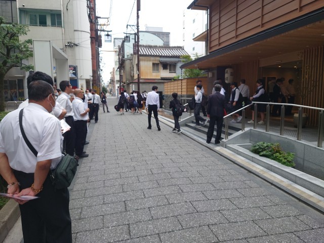 タクシー行動が始まります。それぞれ担当の運転手さんが宿の玄関までお迎えに来てくれました。予想気温は高いですが、朝は秋らしく気持ちの良い天気です。