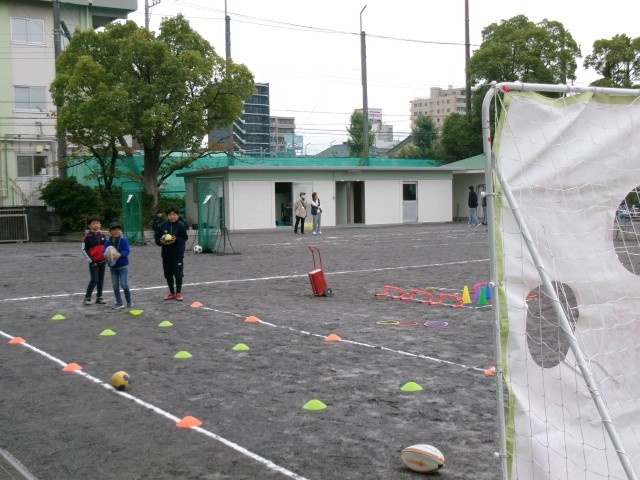 投力に自信があるサッカー部や野球部のメンバーが口々に『飛距離がかなり伸びた!』と嬉しそうに報告してくれました。力の入れどころ、どこの部分を意識した方が良いかなどが学べる良い機会になったようです。今回、体験できなかった生徒にも教えてあげてくださいね。参加賞のラグビーボール型キーホルダーも宝物ですね。