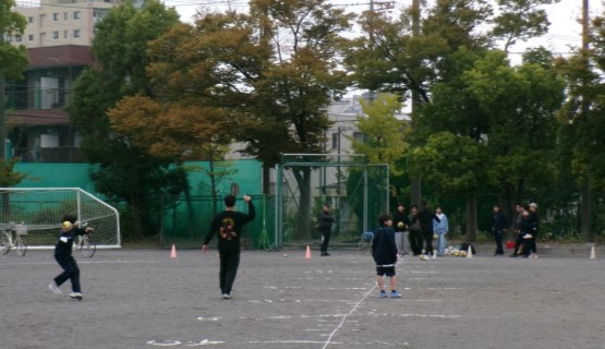 校庭では、元ラグビー選手杉本氏による”投げ方教室”が行われました。