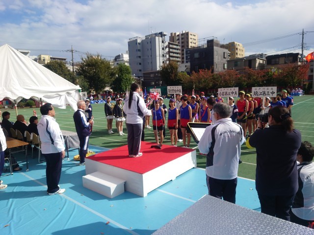 今日は愛国学園の創立記念祭で「招待校リレー」に参加してきました。江戸川区の中学校の他にも、足立区、荒川区、船橋市、白井市の中学校、計24チームが出場しました。午前中は予選を突破し、午後の決勝では見事3位に入り賞状とトロフィーをいただきました。1日お疲れ様でした。