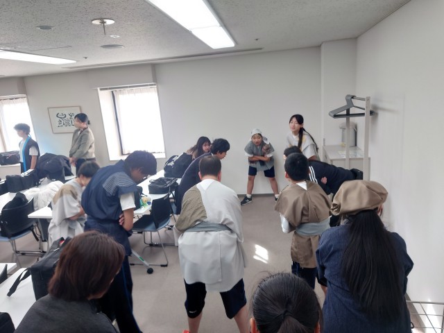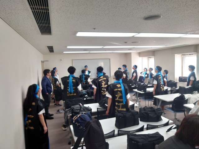 長い時間をかけてこの日のために生徒も先生も一緒になって練習や大道具の準備をしてきました。本番当日は待機部屋で声出しをして気合を入れて臨みました。
