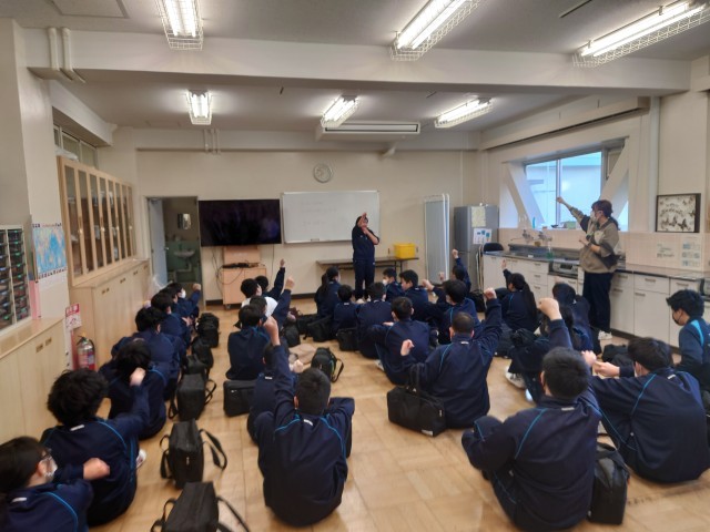 タワーホール船堀にて、連合学芸発表会が行われ二之江中は演劇を披露しました。ストーリーは、昔々、海辺に住む貧しい家族がいました。父親は漁に出かけても魚が捕れずワカメなどを食べてなんとか家族は生活していました。ある時、仙人を助けたことがきっかけで、ソーラン節を元気に踊ると大量の魚が贈られることを教えてもらいました。家族はソーラン隊とともに、元気にみんなでソーラン節を踊り大量の魚を手に入れしあわせにくらしました…というものです。