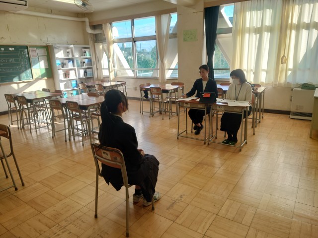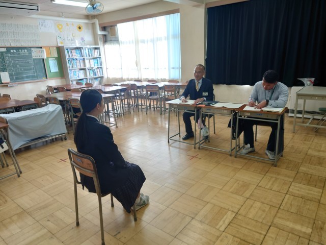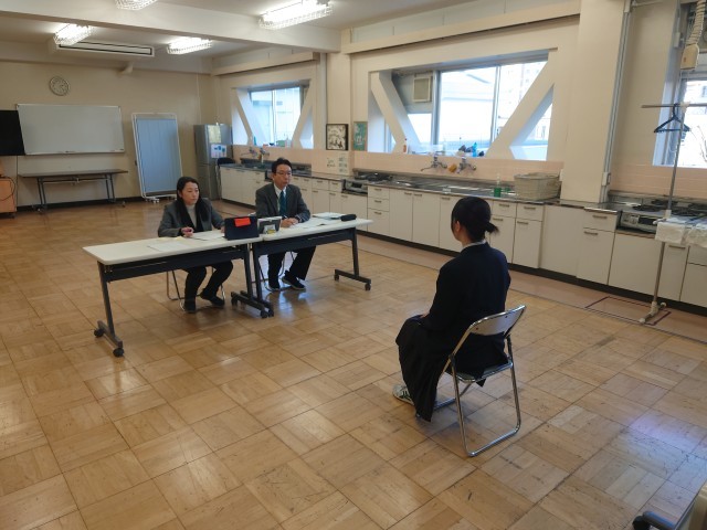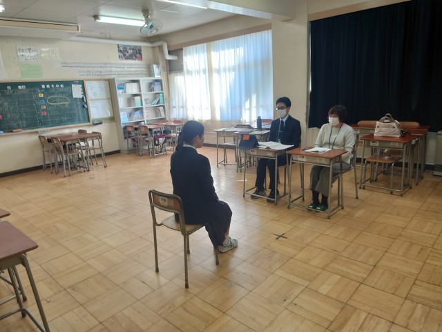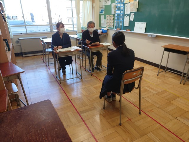 民生児童委員、学校運営連絡協議会の方々と教員がペアになって面接官となり、受験に向けた模擬面接を行いました。今日と明日の2日間にわたって行われます。面接も練習が大切です。緊張感の中で、言葉にすることで自分の考えもまとまっていきます。自分の考えを自分の言葉で伝えられるように準備していきましょう。お忙しい中ご協力いただきありがとうございました。