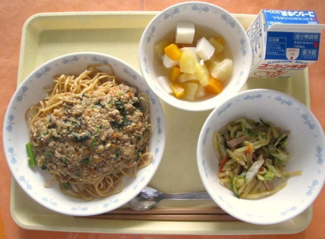 今日は二学期の給食最終日です!具がたっぷりかかる汁なし担々麵は辛さ控えめに、誰でも美味しく食べてもらえるように仕上げてくれました。サラダの食感や、カットした寒天のきれいな形など、今日も隅々まで調理員さんのこだわりが詰まっています。目や舌など、五感を活用して食べてもらえると嬉しいです。