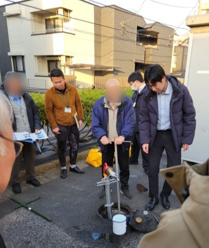 食料などの物資やマンホールトイレの保管場所、飲料水を確保するための応急給水栓の使い方、開設職員が校舎内に入るための確認事項など、一つ一つ丁寧に確認していきました。