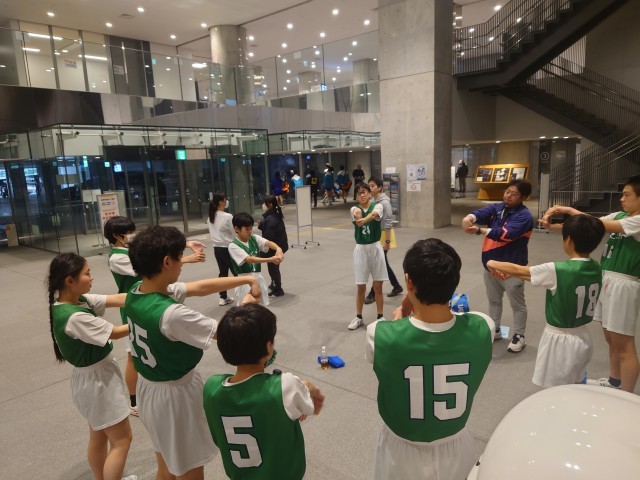 ポートボールもバスケットボールも入念にアップをして試合に臨んでいます。バスケットでは、練習してきたゾーンディフェンスで、攻守の切り替えを早くしてゲームを進めています。シュートチャンスはたくさんありながらも決めきれず勝ちきれていませんが白熱したゲームを行ってます。