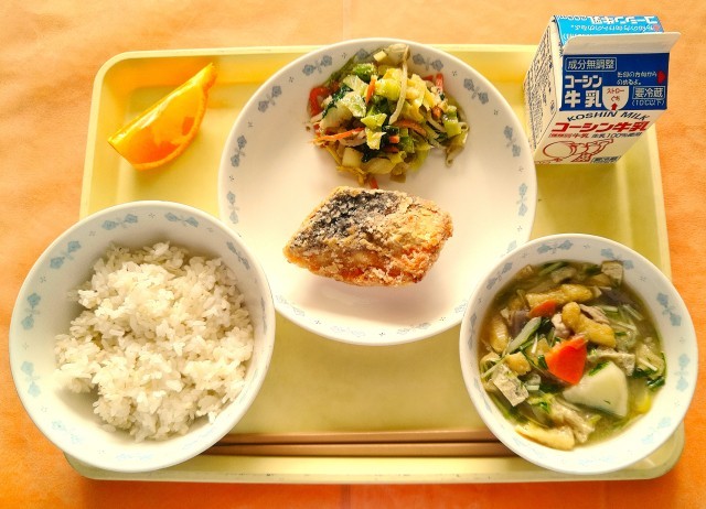 今日の果物はデコポンです。デコポンは「清見」と「ポンカン」から生まれた柑橘果物で、ポコッとでっぱっている形から「デコのあるかわいい清見=デコポン」と名付けられました。甘さを量る糖度が13度以上の物にしかつけられない名前なので、酸っぱい果物が苦手な人にも食べやすいのが特徴です。今日のデコポンも身がぎゅっと詰まってみずみずしさ、甘さがありました。皮のある柑橘類は苦手な人も多いようですが、ぜひ乾燥する喉を美味しい果汁で潤してほしいですね。