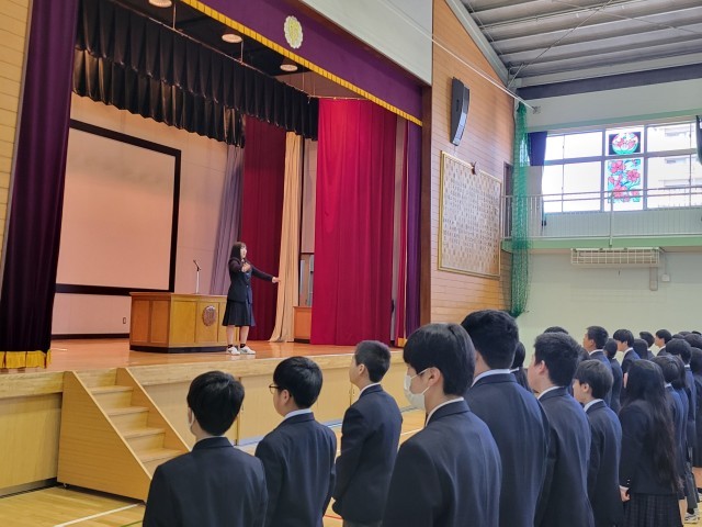 令和8年度が始まりました。それぞれ進級した生徒たちが、静かに整列して持つ姿は立派でした。